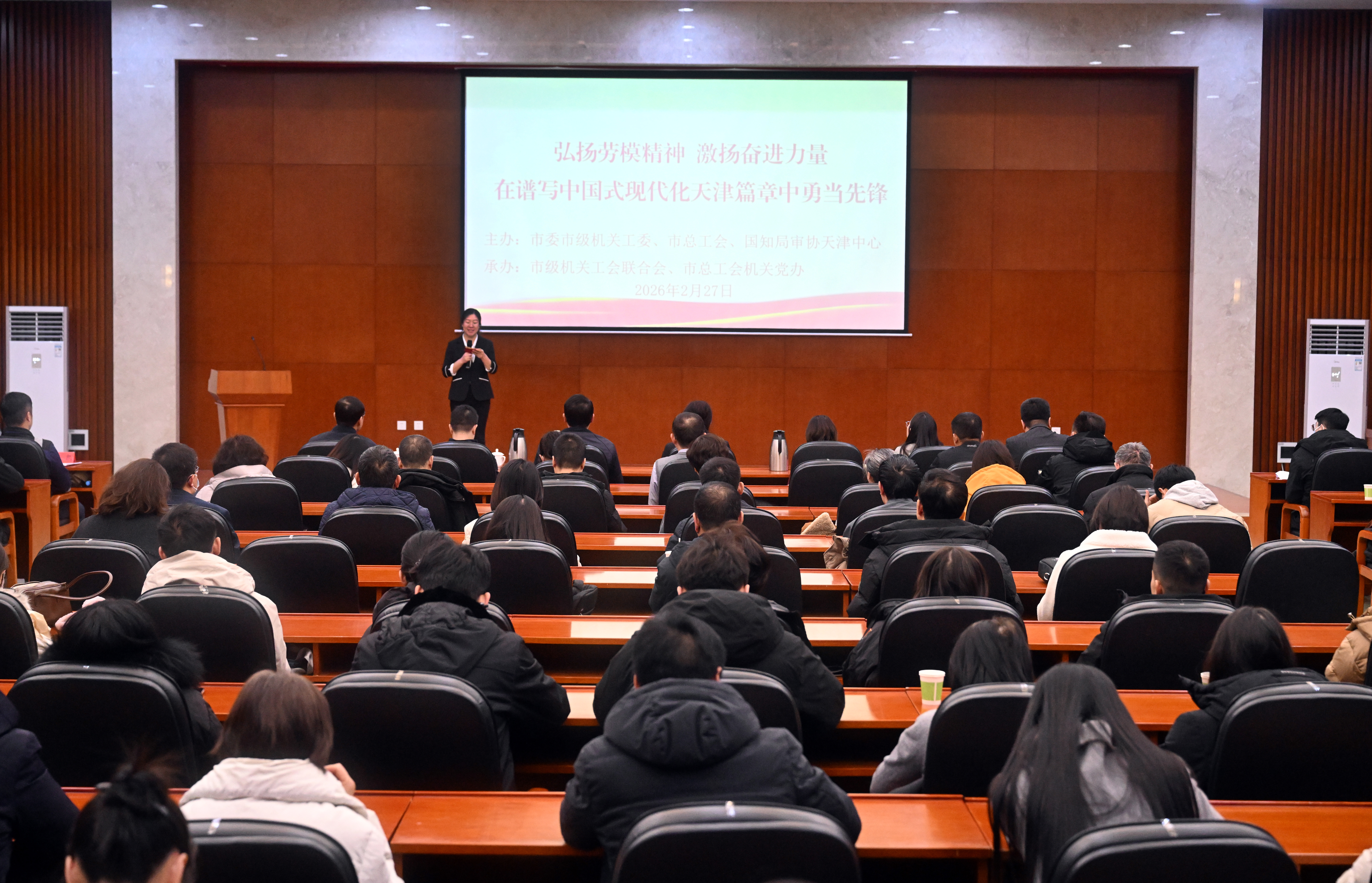 近日,“弘扬劳模精神 激扬奋进力量——在谱写中国式现代化天津篇章中勇当先锋”主题宣讲活动在市总工会举行,市级机关党员干部职工代表约170人参加。审协天津中心作为主办单位之一,全程参与并支持本次宣讲活动。